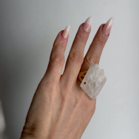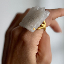 CITADEL White Quartz Fortress Ring | 24k Gold Filled | Adjustable Band | Luminous Gold Brushed Finish