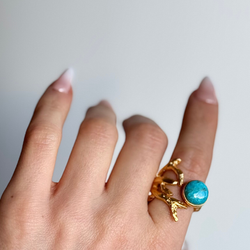 Vibrant Turquoise Ring | Round Cut Gold Branch Ring | Gold Filled | Adjustable | 10mm