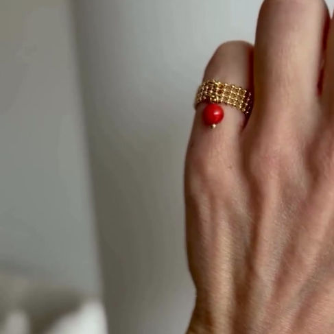 ISOLA Genuine Coral Sphere Droplet Ring