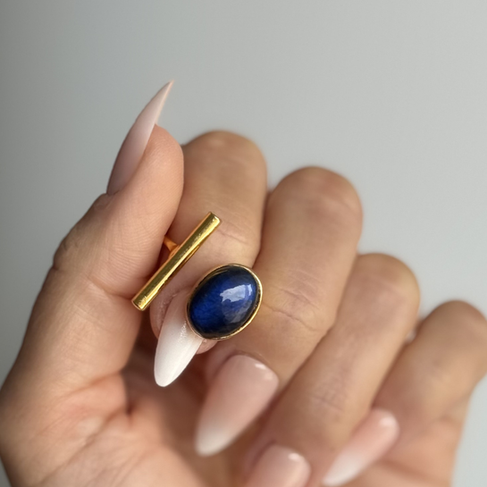 Labradorite | 14x10mm Oval Gemstone | Asymmetric Design | Adjustable