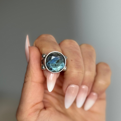 16mm Faceted Labradorite | Silver Plated Band | Adjustable